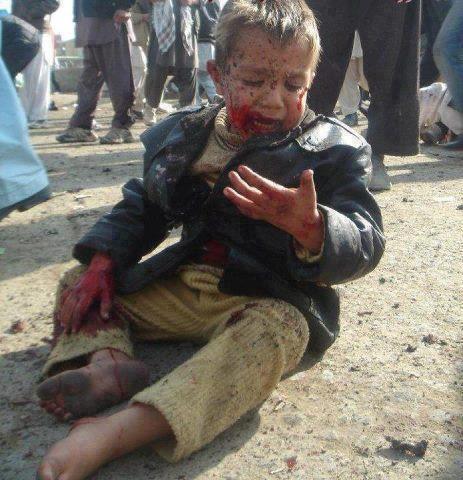 A boy is wounded and stunned following a drone strike in Pakistan. Getty Images.