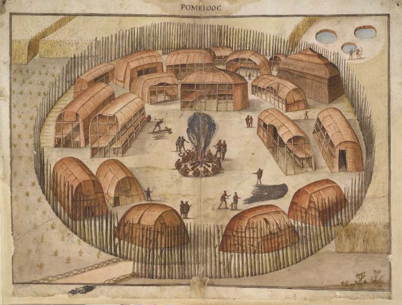 Native American village of Pomeiooc at the dawn of colonialism. British Museum.