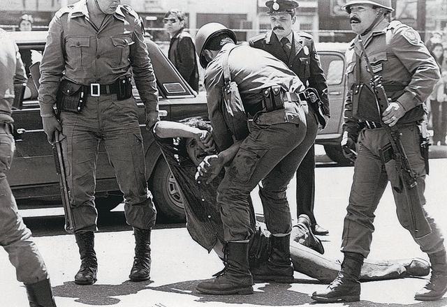 Political dissident being dragged away to be disappeared by fascist forces in Argentina during the Dirty War. Source NYT. ← Previous