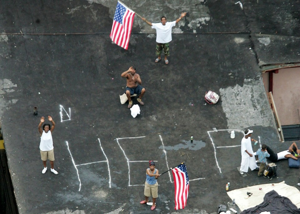 Residents wait on a rooftop to be rescued from the floodwaters of Hurricane Katrina on Sept 1, 2005 Photo by STR Reuters ← Previous Next →