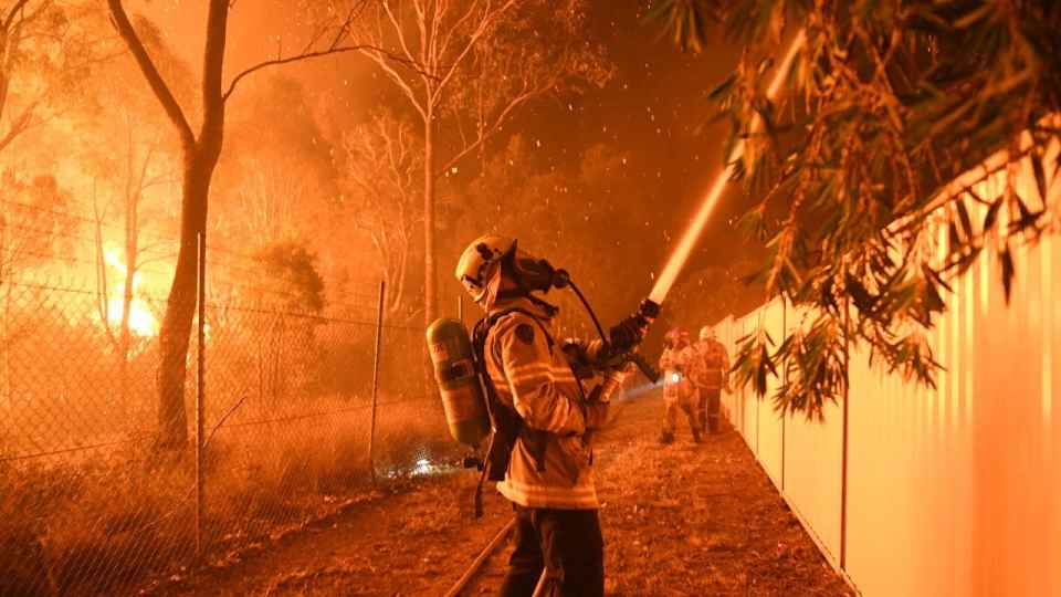 Firefighters battle blaze in the suburbs of Sydney. Source The Australian.