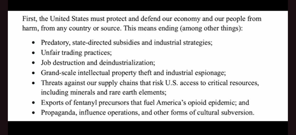 The document is a hard turn back to the Monroe Doctrine, which demarcates all of the North and South American hemisphere as being under the hegemonic control of the American Empire. Defining it as “supply chains,” all of its resources belong solely to them. It is American imperialism redux unapologetically on steroids.