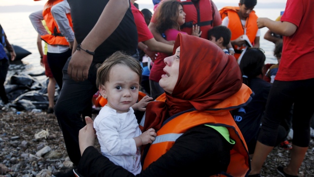 A Syrian refugee cries as she and her child narrowly escape drowning off the coast of the Greek Isand of Lesvos. Photo by Yannis Behrakis, Reuters. ← Previous Next →