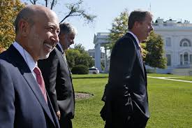 Oligarchy: From left Goldman Sachs CEO Lloyd Blankfein, AIG CEO Robert Benmosche and GE Capital CEO Keith Sherin arrive at the White House in October for a meeting with President Barack Obama. Photo Source: US News and World Reports ← Previous Next →