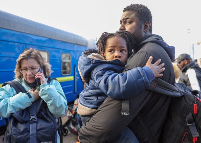 Racism in Ukraine. An African is prevented from fleeing the country. Photograph is by Umit Bektas, Reuters ← Previous Next →