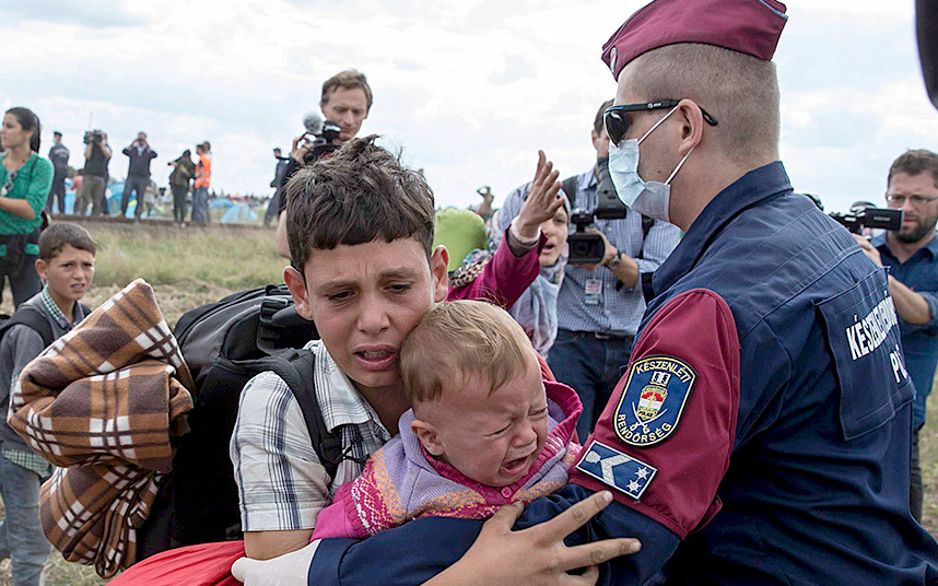 Refugees attempt to pass through Hungary. Photo source, The Telegraph.